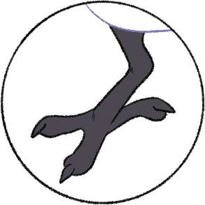 Bird-like feet with 3 toes; two front toes, and a third back toe to aid in balance.